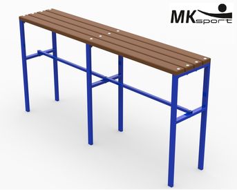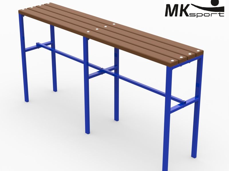 Любая спортплощадка должна быть оборудована не только тренажерами и снарядами для выполнения упражнений, но и местами для отдыха спортсменов. Данная модель изготовлена из стальных профильных труб 40*25*2 и 25*25*1,5 мм. Сиденье выполнено из бруса и покрыто атмосферостойким составом в два слоя. Длина скамьи 1,95 м, ширина 0,5 м. Стандартный цвет каркаса синий.